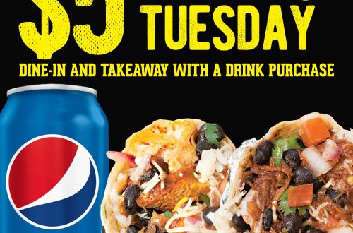 Read More$5 Burrito Tuesdays: Available all day Tuesday for dine-in and take-away with the purchase of any drink. Choose…