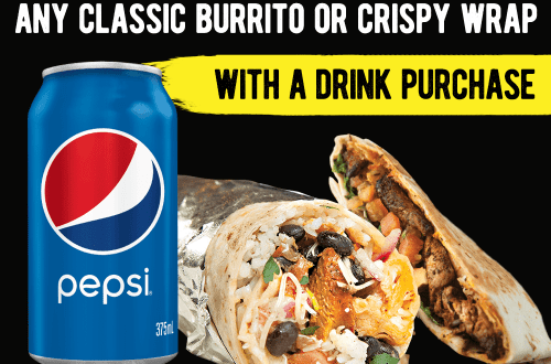 $7.95 Burrito Tuesdays: Available all day Tuesday for dine-in and take-away orders with the purchase of any drink.…