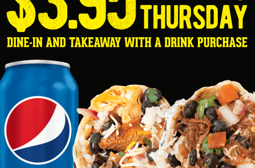 Read More$3.95 Burrito Thursdays: Available all day Thursday for dine-in and take-away with the purchase of any drink. Choose…