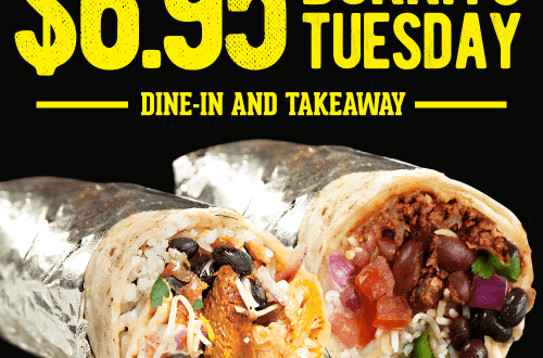 Read More2 for 1 Burrito Tuesdays: Available all day Tuesday for dine-in and take-away with the purchase of any…